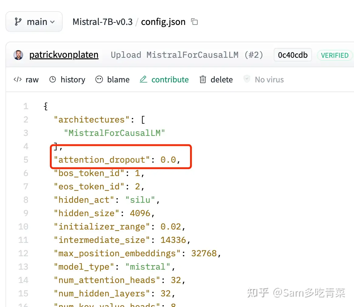 而在LLaMA、Mistral这些常见的开源大模型中,attention_dropout都被设为0,也就是实际上不使用dropout,model.eval()对这些不开dropout的大模型实际上没有影响。